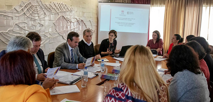 A reunião com a Associação de Municípios da Região Autónoma da Madeira (AMRAM) decorreu na Câmara Municipal de Câmara de Lobos com a presença da Presidente da Comissão para a Cidadania e Igualdade de Género (CIG), Teresa Fragoso.
